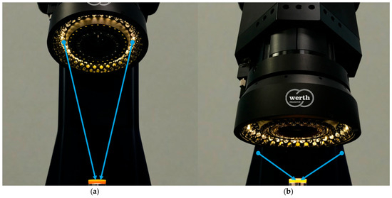 Views of the working distance of the Werth Zoom optical sensor used: (a) 220 mm; (b) 37 mm.