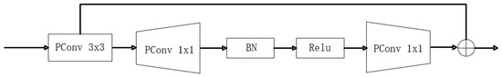 To better deploy the object detection model using a UAV’s limited computational resources, we introduce the C2f-Faster module, which effectively reduces the number of parameters and memory access points, thereby lowering the model’s complexity. The core improvement of C2f-Faster lies in replacing the Faster Block in C2f with the Faster Block from FasterNet, which significantly decreases the number of model parameters and memory access points. Partial convolution (PConv), as a lightweight variant of convolution, enhances computational efficiency by operating solely on valid input regions, thereby avoiding ineffective or repetitive computations that are prevalent in traditional convolution operations. In FasterNet Block, the application of PConv not only optimizes the feature extraction process, but also makes the network structure more compact and reduces unnecessary parameters and computations.