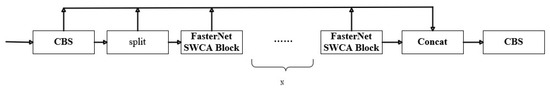 Structure of C2f-Faster-SWCA (Fasternet-SWCA replaces Bottlenet).