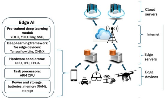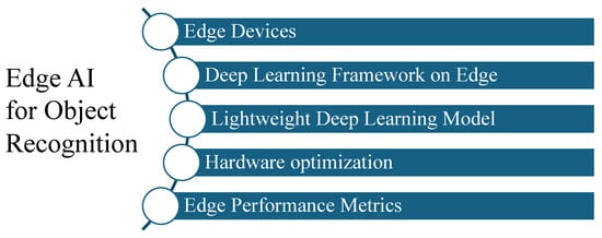 Integrating artificial intelligence (AI), particularly deep learning techniques, with edge computing architectures is transforming object recognition capabilities across various domains [5]. This powerful combination, known as edge AI or edge intelligence, allows for real-time object detection, tracking, and classification on resource-constrained edge devices, opening up new possibilities for intelligent systems. From smart surveillance systems that can identify suspicious activities to autonomous vehicles that can navigate complex environments, edge AI is crucial in enhancing safety, efficiency, and automation [1,6]. The emergence of edge AI is motivated by rapid improvement in edge devices and single-board computer technology. Some edge devices with high-performance hardware accelerators are on the market, such as NVIDIA Jetson, Google Coral, FPGA, mobile device, and drone platform [7]. This emergence of edge devices is also accompanied by the emergence of special deep learning frameworks for edge devices, such as TensorflowLite [8], TensorRT [9], ONNX [10], OpenCL [11], and VitisAI [12].