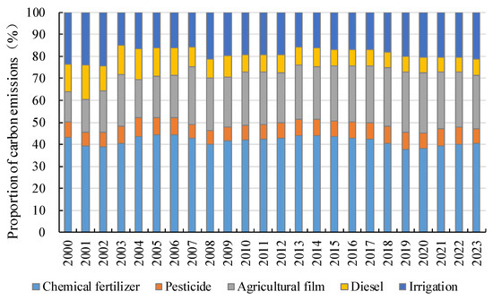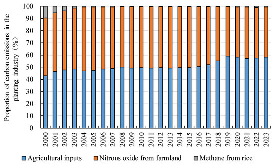 3.1.5. Carbon Emissions Structure in the Planting Industry