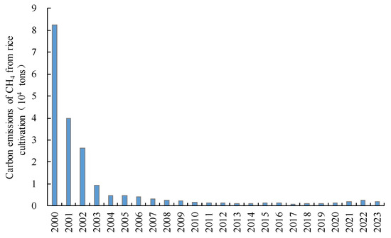 2.2.3. Carbon Emissions of CH4 Caused by Rice Cultivation