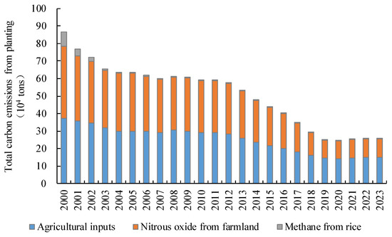 3.1.4. Total Carbon Emissions from the Planting Industry