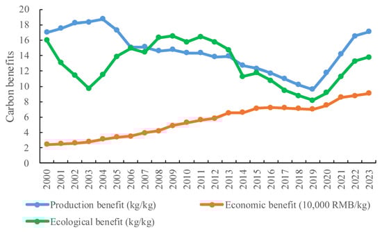 3.2. Characteristics of Carbon Benefits in the Planting Industry of Beijing