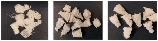 The first material weighed 0.0837 g, with a pure PCL concentration of 100%; the second material had a weight of 0.3186 g and a PCL concentration of 95% of PCL and 5% of strontium-loaded hydroxyapatite; finally, the third PCL material had a PCL concentration of 90% and 10% hydroxyapatite and a weight of 0.2034 g (