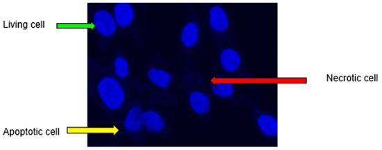 12]. The main disadvantage of this type of assay is that it does not allow for the assessment of morphological changes in cells; therefore, it is combined with apoptosis or cell death assays such as Hoechst 33342. This technique consists of a fluorescent dye that can cross the cell membrane of the cell, staining the nucleus of living cells and allowing for their subsequent measurement under an optical microscope [