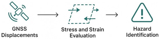 In particular, GNSS-derived strain rates have proven effective in informing probabilistic earthquake forecasts. For example, ref. [1] converted strain-rate fields into estimates of seismic moment accumulation in southwestern Japan, successfully correlating zones of elevated strain with historical seismicity. Ref. [2] further emphasized the importance of separating long-term tectonic trends from transient postseismic signals, warning that uncorrected geodetic anomalies can mislead hazard models—especially in slowly deforming regions.