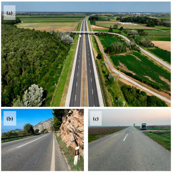 A typical motorway, state road, and county road in Croatia are shown in Figure 2.