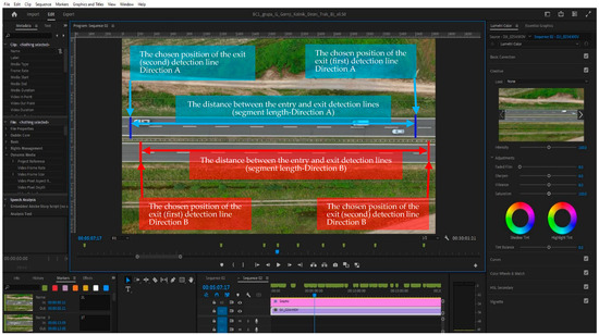 Defining the positions of entry and exit reference lines for vehicle detection on aerial video footage within the Adobe Premiere Pro 2023 software [45].