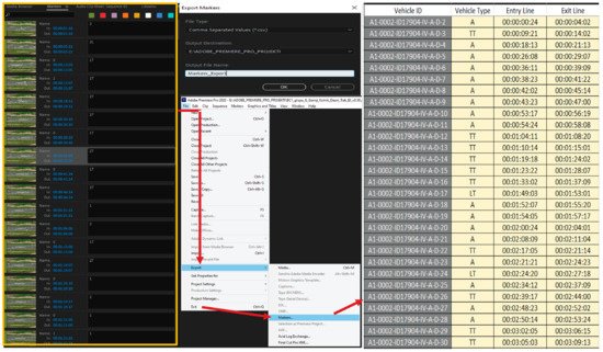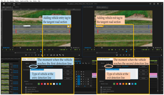 Marking the moments of individual vehicles entering the entry and exit detection lines, based on adding tags with comments to the video timeline in the Adobe Premiere Pro 2023 software [45].