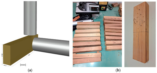 (a) Illustration of NPR perpendicular to the grain of Pinus sylvestris beams, and (b) specimens after NPR laboratory testing.