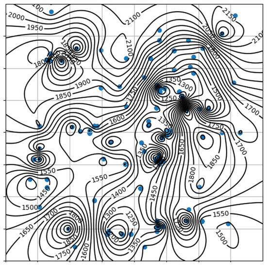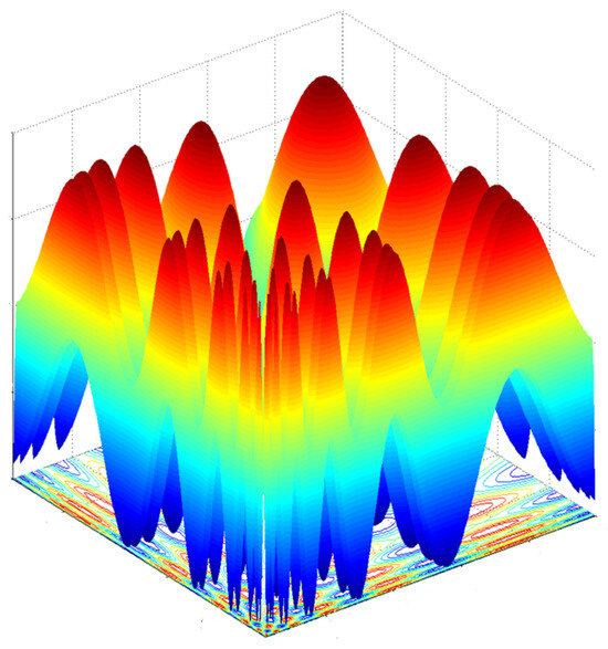 A block processing strategy is adopted in this study to balance the fineness of the topographic map and computational efficiency. The entire 2D search space is uniformly divided into 4 quadrants (i.e., 4 parts), and, inside each quadrant, a resolution of 100 × 100 is used to define grid points. Thus, the total number of interpolated points for the entire topographic map is 4 parts × (100 × 100 points/part) = 40,000 grid points. This approach ensures sufficient detail while effectively managing the computational load.