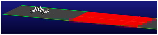 During the Adams/Car calibration phase, the detailed multibody model is built, simulated, compared, and adjusted. As described above, the Adams/Car model was initially built for durability analyses. Simulating on virtual ground with the given obstacles, as depicted in Figure 3, the numerical results are output in *.rsp format to be read in nCode as well. The simulation results are compared with the test results, and the errors in both the amplitudes and the periods are assessed. If the errors are small, the parameter sensitivity is calculated using the finite difference method, with additional simulations for parameter perturbation. Subsequently, assuming a linear input–output relationship, the vehicle parameters are adjusted using the least squares optimization method. The simulation loop continues until the errors are found to have converged, at which point the calibration process is concluded.