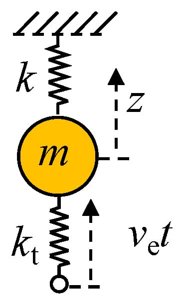 When an effort is made to solve the two-DOF equation theoretically using Laplace transformation, the expression of the result becomes somewhat complex, making it difficult to extract the necessary information for calibration. Therefore, a single-DOF vibrational model, as depicted in Figure 8, is considered to extract useful information from its theoretical solution.