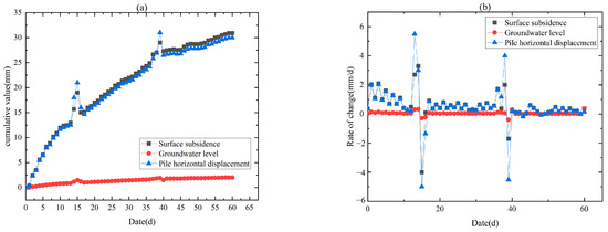 Monitoring data from Songxi Station. (a) Cumulative value. (b) Rate of change.