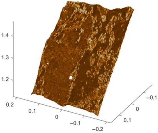 As illustrated in Figure 14, the reconstructed surface smooths out outliers and provides an accurate mathematical representation based on Equations (5) and (11) for the soil surface.