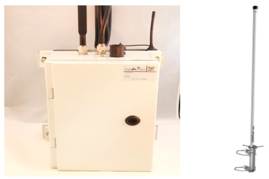 Once the data is captured by the sensors, it is transmitted to a gateway device that serves as the intermediate communication hub between the field layer and the cloud infrastructure. In this implementation, we employed the GP Outdoor LoRa Gateway, an industrial-grade solution specifically designed for reliable long-range LoRaWAN communication in outdoor environments (Figure 4). The gateway is enclosed in an IP66-rated weatherproof casing and supports multiple backhaul options, including Ethernet, Wi-Fi, and cellular networks (GPRS/3G/4G), ensuring connectivity in diverse deployment scenarios. It features an ARM Cortex-A53 processor, 1 GB of RAM, and 32 GB of local SD storage, while operating at a total power consumption of 12 W.