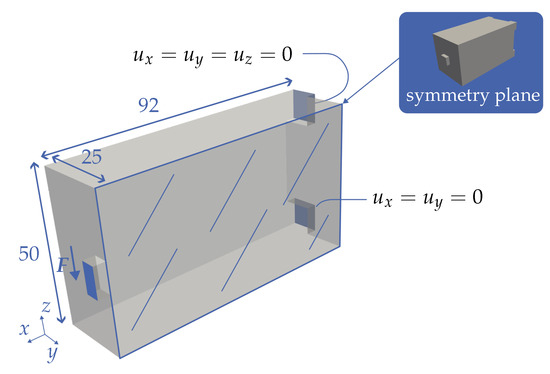 Hook’s linear-elastic law is used as the constitutive law, which establishes a relationship between the stress tensor and the strain tensor :