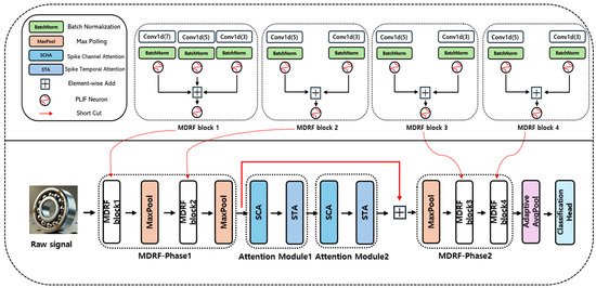 Building upon these foundational advancements, attention-based SNN models—such as SEW-ResNet—have emerged, demonstrating that spike-driven architectures can achieve performance comparable to ANN counterparts while maintaining significantly lower energy consumption [18,26,27,28]. These innovations have made it possible to build SNN models that perform well while still using much less energy and computing power. Despite recent advances in SNNs, existing approaches for bearing fault diagnosis have yet to simultaneously achieve ANN-level accuracy and genuine event-driven efficiency. Furthermore, previous SNN methods have not effectively incorporated attention mechanisms to dynamically weight spatial-temporal features and adequately extend receptive fields, which is crucial for processing long-sequence vibration signals commonly encountered in bearing fault diagnosis.