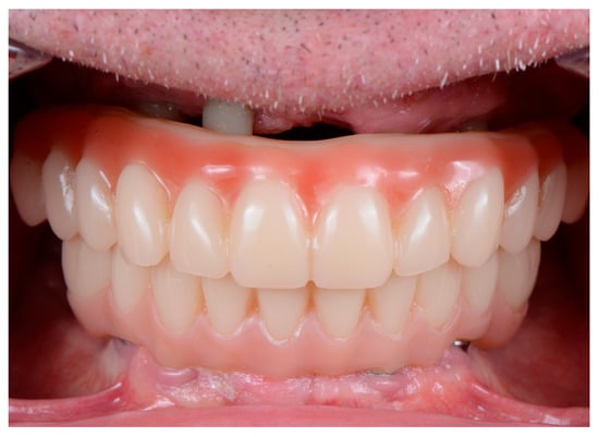 These implants allow the placement of immediately-loaded polymethyl methacrylate (PMMA) or polyetheretherketone (PEEK) prostheses [], shortening the overall treatment time and improving patient quality of life. Advances in 3D printing seem to offer promising solutions for implant-supported provisional restorations although the available data on this context is very limited. Some authors mention that fitting the provisional prosthesis can be easier if it is done 2–3 weeks after surgery. This approach ensures the absence of dehiscences and reduces the need for readjustments of the provisional prosthesis [].