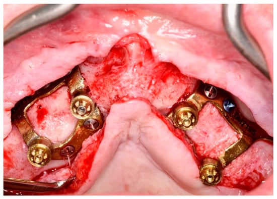 These devices have been successfully used in cases of bone augmentation failure [,] or after oncological surgery [,]. A recent systematic review [] including data from 227 patients recorded a high short-term survival rate of 97.8%, with a median follow-up time of approximately two years.