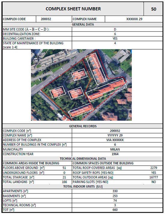 Each building complex is characterized by a specific sheet that describes the main features of the complex (Figure 9).