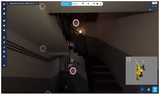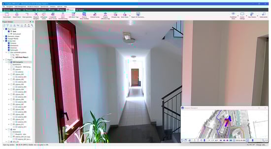 An interesting technological innovation has been the introduction of high resolution cameras within iMMS systems. These instruments are highly competitive in terms of accuracy and acquisition speed of the three-dimensional component, allowing for the simultaneous capture of high-quality/high resolution images. This has enabled the use of these devices even for applications within large real estate portfolios, offering sustainable advantages in terms of surveying time and costs compared to the static laser scanning method. Through camera integration, iMMS systems simultaneously provide the recognition and geolocation of assets, the generation of site maps, and the enabling of three-dimensional measurements throughout buildings. Web-based virtual tour navigation within the buildings can also be implemented, and a 3D point cloud of the site can be obtained.