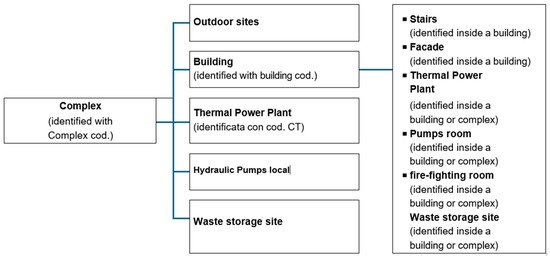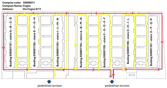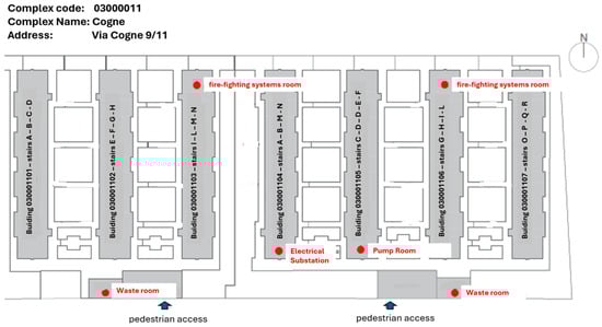 Typically, the administration of routine and extraordinary maintenance contracts for the buildings in a complex is conducted through an aggregated approach. Additionally, buildings within a complex often share essential services, such as the heating plant, connections for technical services such as water distribution or electricity, and garbage collection spaces, rather than individual access to parking areas and/or garages for apartment owners or residents. The data acquired in the field during the surveying process are primarily intended to update and enrich the information assets that, in the technical domain, accompany the database already available within the management information system used by MM. The asset survey should enable the following: