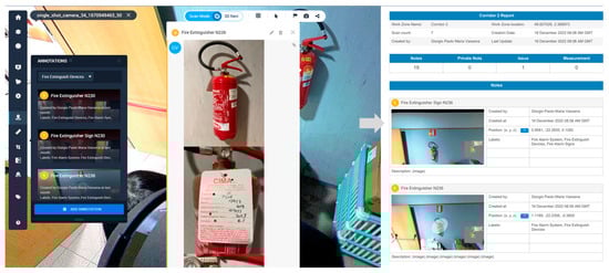 Unfortunately, although it is possible to tag objects in images, in the absence of a three-dimensional model of the surveyed environments, it is not possible to geolocate the detected objects. A possible solution could consist in the use of instruments capable of simultaneously acquiring both the three-dimensionality of the environments and high-quality photographs, such as the latest generation laser scanners such as the Z+F IMAGER® 5010C with the HDR I-Cam camera [13], but the timelines and, consequently, the costs of such survey activities are incompatible with the timelines of a rapid acquisition of assets in the field using the previously described systems [14].