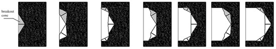 Using this assumption, the angle of the potential breakout cone was estimated to be α = 20°, corresponding to the trajectory of the hypothetical fracture surface [33].