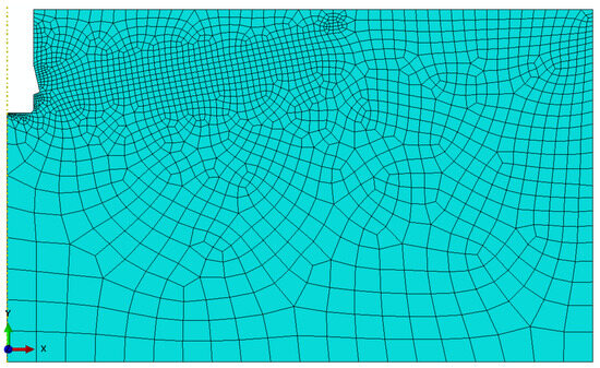 The model was discretized using 4-node axisymmetric finite elements of type CAX4R (continuum, axisymmetric, 4-node, reduced integration), generating the finite element mesh shown in Figure 11. This meshing strategy ensured an efficient balance between computational cost and the accuracy required for stress concentration and fracture prediction in the critical zones.