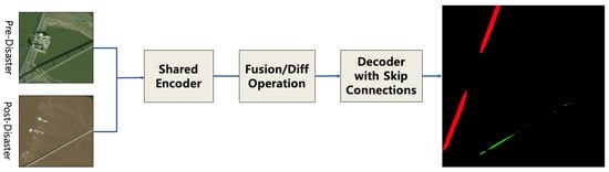 Most existing deep learning-based research in this domain has focused on building damage assessment [14,15,16,17,18,19,20], which is supported by datasets such as xBD and xView2 [21,22,23,24,25]. In contrast, despite the critical operational role of road networks during emergencies, studies targeting road infrastructure remain limited [26,27]. The lack of reliable road damage detection and evaluation techniques introduces a significant gap in current disaster response systems.