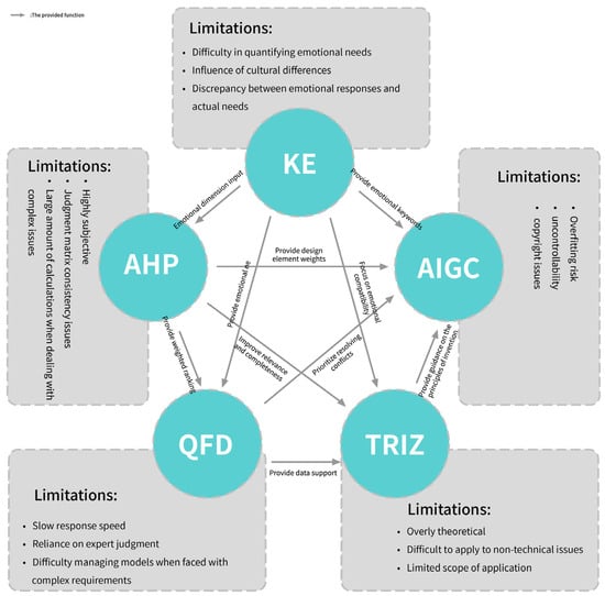 Interrelationships and limitations of design methods: KE, AHP, QFD, TRIZ, and AIGC. Source: own processing.