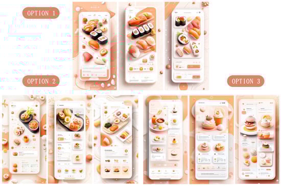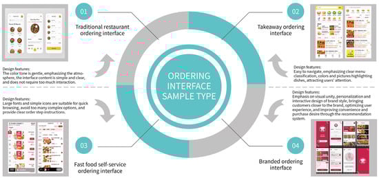 During the screening process, a Kendall W consistency test was conducted to ensure the consistency of opinions among the reviewers. The test results show that Kendall W = 0.73, p < 0.01, indicating that the results of the two rounds of screening have a high degree of reliability and consistency. Based on the test results, four types of typical ordering interface samples were finally identified and provided sufficient support for subsequent design optimization and research. The results are shown in Figure 4.