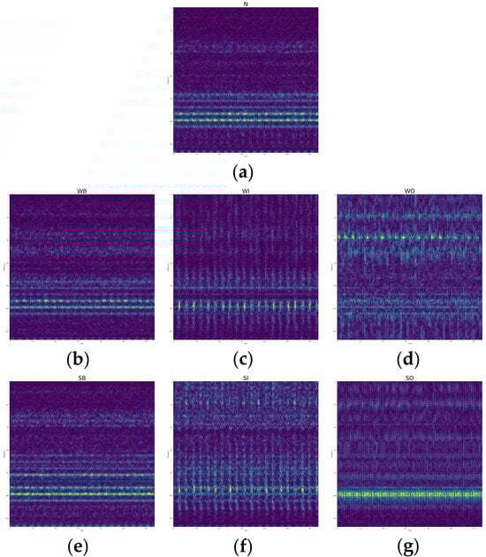 Consequently, in order to draw more useful features from the raw vibration signals, we attempt to incorporate both time- and frequency-domain information through the spectrogram. The spectrogram can be considered as two-dimensional image-formatted data, which represents the varying pattern of the frequency component’s intensity over time. To generate the spectrogram, the raw vibration signal is transformed into a two-dimensional matrix whose element indicates the intensity of a pair of certain frequency components and time points.