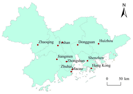 The Greater Bay Area, situated along the southern coast of China, is one of the country’s most economically developed and open regions. It includes the special administrative regions of Hong Kong and Macao, along with nine cities in the Pearl River Delta of Guangdong Province: Guangzhou, Shenzhen, Zhuhai, Foshan, Huizhou, Dongguan, Zhongshan, Jiangmen, and Zhaoqing, covering approximately 56,000 square kilometers (as shown in Figure 1). Geographically positioned near Southeast Asia and supported by the extensive mainland Chinese market, the Greater Bay Area serves as a crucial hub linking the mainland to international markets. It acts as a vital window for China’s global engagement and a frontline for international economic competition. With a diversified industrial structure, well-developed infrastructure, and significant economic influence, the Greater Bay Area holds a prominent position in the global economy [33].