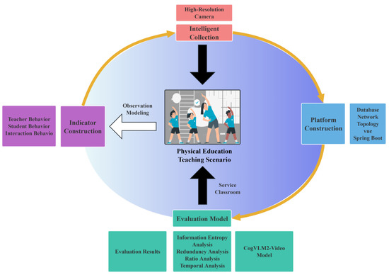 Against this backdrop, this study aimed to design and implement an AI-driven system that enables comprehensive, real-time, and accurate evaluation of teaching behaviors in secondary school PE classrooms. The system targets observable behaviors aligned with China’s curriculum standards, assessing teacher, student, and interactive actions through a framework incorporating entropy, redundancy, ratio, and temporal analysis [4]. Specifically, the study seeks to answer the following research question: Can an AI-based system, leveraging the CogVLM2-Video model, accurately recognize and automatically evaluate teaching behaviors in PE classrooms? Answering this question is expected to provide robust scientific support and practical guidance for improving the quality of physical education teaching.