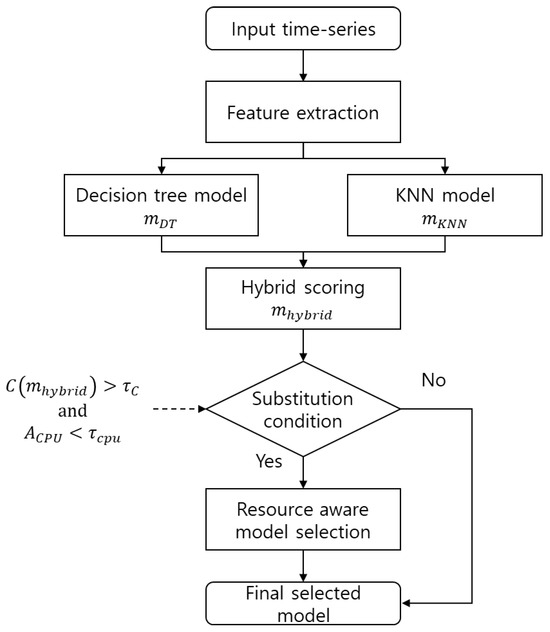 To select the most suitable forecasting model under varying time-series characteristics and constrained computing environments, we propose a hybrid model selection strategy that integrates decision-tree-based classification with similarity-based reasoning. This strategy enables the system to make adaptive, accurate, and resource-aware model decisions in real time.