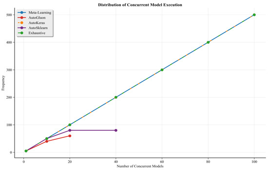 In contrast, the proposed meta-learning framework can simultaneously process up to 100 concurrent model executions. As a result, AutoML methods become infeasible for real-time, large-scale deployment in edge environments. These observations underscore the following critical trade-off: although AutoML methods automate model optimization, their scalability limits their applicability in latency-sensitive systems. In contrast, the proposed meta-learning method offers consistent and efficient service performance even under high concurrency and limited resources.