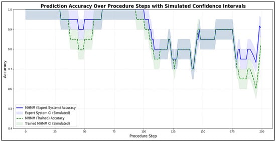 - Unimodal Hidden Markov Model (HMM): Unimodal HMMs are proficient at modeling temporal sequences and are well documented for their effectiveness in applications such as speech recognition and time series analysis. Their strength lies in their ability to capture temporal dependencies clearly, according to Liao et al. []. However, they are inherently limited by their inability to incorporate multiple data streams, leading to a potentially incomplete assessment of human proficiency [].
