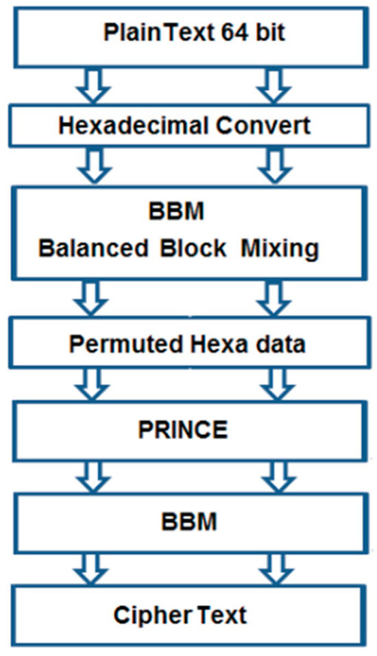 The Improved Lightweight Encryption Algorithm (ILEA) [19] enhances the PRINCE LWBC by adding two Balanced Block Mixing (BBM) layers, one at the input and another at the output, as observed in Figure 12. This modification improves the diffusion of data, making the cipher more unpredictable and resistant to cryptanalysis. ILEA operates on a 64-bit block with a 128-bit key and is optimized for low-power, low latency applications, making it ideal for IoTs devices. The algorithm performs efficiently in both Python and C++ implementations, with ILEA in C++ showing a processing time of 1.6 μs per round. A comparative study with other lightweight block ciphers demonstrates ILEA’s superior performance in terms of encryption and decryption times. Additionally, ILEA offers enhanced security by increasing the effective key length to 256 bits, making it resistant to brute-force attacks. This makes ILEA suitable for environments requiring both speed and robust security in constrained devices.