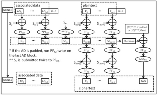 - Marsola, E.; Antônio, J.; Xexéo, M. FlexAEAD v1.1—A Lightweight AEAD Cipher with Integrated Authentication. Enigm.-J. Inf. Secur. Cryptogr. 2019, 6, 15–24. [Google Scholar]