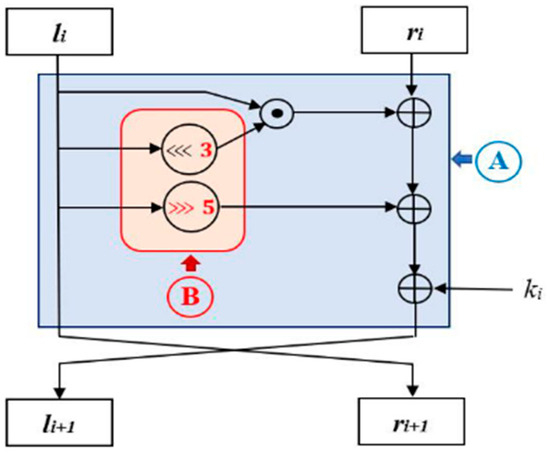 - Feng, J.; Li, L. SCENERY: A lightweight block cipher based on Feistel structure. Front. Comput. Sci. 2022, 16, 163813. [Google Scholar] [CrossRef]