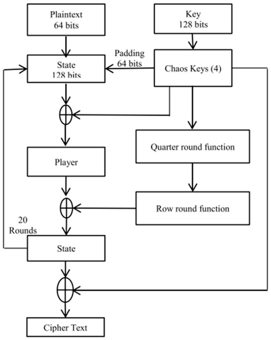 - Kubba, Z.M.J.; Hoomod, H.K. A Hybrid Modified Lightweight Algorithm Combined of Two Cryptography Algorithms PRESENT and Salsa20 Using Chaotic System. In Proceedings of the 2019 First International Conference of Computer and Applied Sciences (CAS), Baghdad, Iraq, 18–19 December 2019; pp. 199–203. [Google Scholar] [CrossRef]