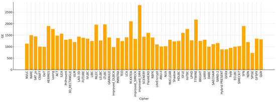 The comparative analysis presented in this study underscores the diversity of LWBC (LWBC) designs, each optimized for distinct trade-offs among cost, performance, and security. A closer examination reveals that while some ciphers such as SPISE, Hybrid PRESENT and Salsa20, and GFRX achieve ultra-low hardware costs (≤1000 GE), they often adopt minimalist design strategies that may result in narrower security margins or simplified key schedules. Conversely, ciphers such as Improved_SM4 and T-TWINE occupy the higher end of the GE spectrum, reflecting their incorporation of robust cryptographic structures and resistance to differential, linear, and algebraic attacks.