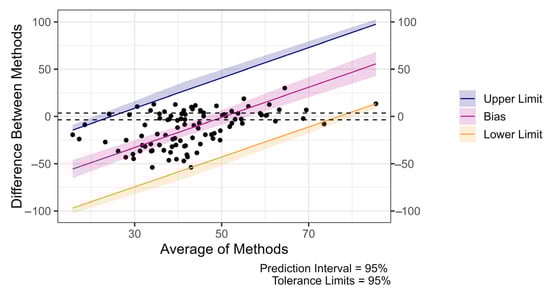 - Francq, B.G.; Berger, M.; Boachie, C. To tolerate or to agree: A tutorial on tolerance intervals in method comparison studies with BivRegBLS R package. Stat. Med. 2020, 39, 4334–4349. [Google Scholar] [CrossRef]