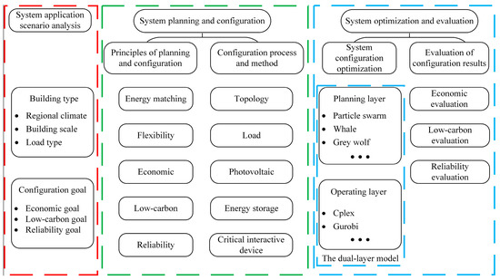 The configuration of the PEDF system requires a flexible arrangement of various interconnected elements, such as photovoltaic modules, energy storage devices, and critical interactive devices. The various configuration options differ in terms of cost-effectiveness, low-carbon emissions, and reliability. Stakeholders, including property owners, asset management parties, operation and maintenance parties, and users, will evaluate the PEDF system based on these economical, low-carbon, and reliability factors [13,14,15]. Therefore, when optimizing and evaluating the PEDF system configuration, it is essential to consider various configuration objectives and constraints to achieve the optimal solution.