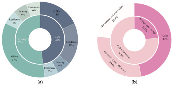 Distribution characteristics of PEDF building applications: (a) building type; (b) climatic region [9,11,12].
