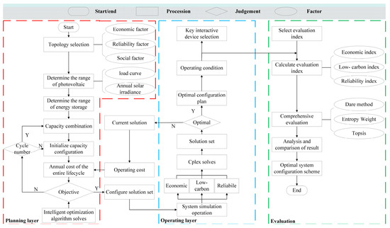 The proposed optimization approach uses two separate layers of models. The planning layer sends system configuration combinations to the operating layer, and the operating layer transmits the system operating cost back to the planning layer. This exchange ultimately leads to obtaining the system configuration optimization results.