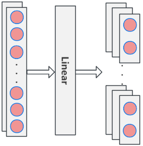 Time-series forecasting (TSF) involves using historical information to predict future states, and the input data are usually a multivariate time series. [22]. After the original data are input into the Linear Tokenization Layeras illustrated in Figure 2), the input time series is first labeled and converted into a standardized feature representation suitable for deep model processing. This design is similar to the tokenization idea in natural language processing (NLP). This layer maps the multivariate observations at each time point to the latent space through linear transformation, forming a “feature label” sequence, laying the foundation for subsequent spatiotemporal feature extraction. The core operation of this layer is a single linear transformation, and its mathematical expression is: